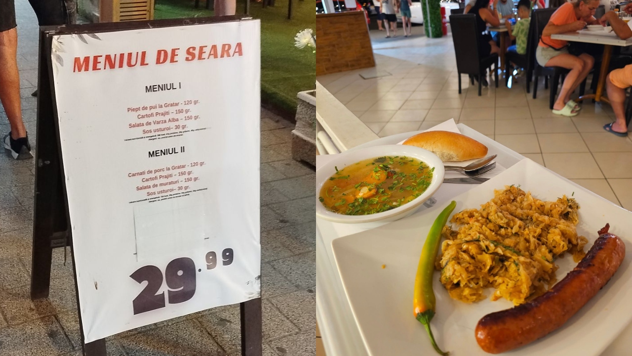 Pentru comparație, în Mamaia, la o terasă din zonă, clienții pot alege între două meniuri de seară la prețul de 29 de lei. Primul include piept de pui la grătar, cartofi prăjiți, salată de varză albă și sos de usturoi, iar al doilea oferă cârnați de porc la grătar, cartofi prăjiți, salată de murături și sos de usturoi.