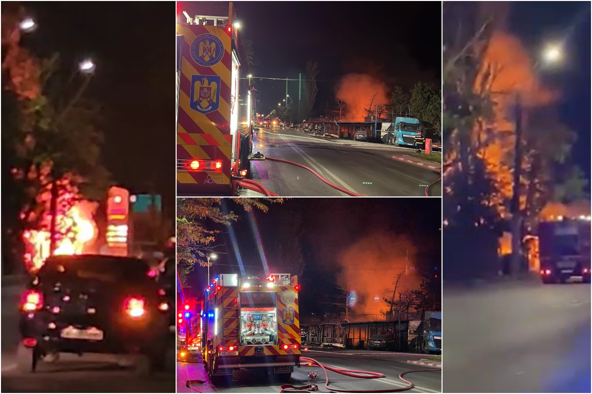 Incendiu de proporţii la un restaurant din Voluntari. Risc de extindere a flăcărilor la benzinăria din apropiere