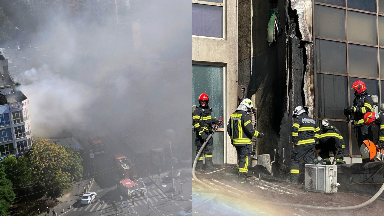Incendiu puternic la Hotelul Sir din București. Peste 30 de persoane au fost evacuate, risc de extindere a flăcărilor la terasa hotelului VIDEO