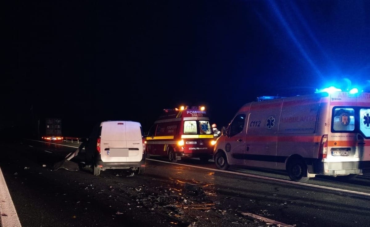 Accident rutier pe A2, cu două maşini implicate: Femeie însărcinată, transportată la spital