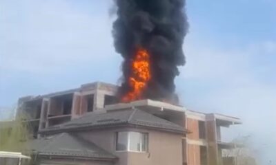 Incendiu în Tunari. Terasa unui bloc în construcții a luat foc