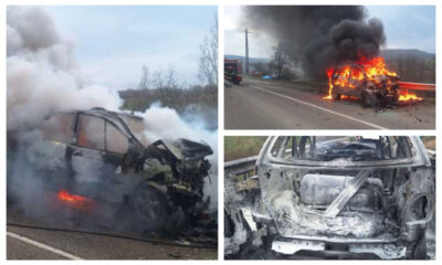 Accident grav în Vinerea Mare. O mașină a luat foc în urma impactului, două persoane au fost rănite