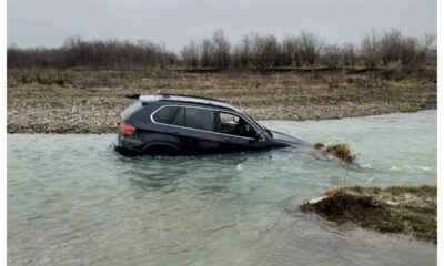Un BMW X5 a ajuns în râu. Șoferul beat și fără permis și-a abandonat bolidul în apă