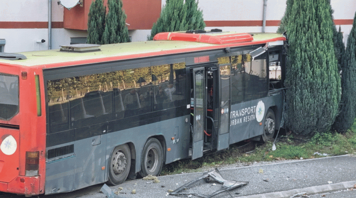 Potrivit ISU Caraș-Severin autobuzul a lovit un platan de pe marginea drumului, în municipiul Reșița.