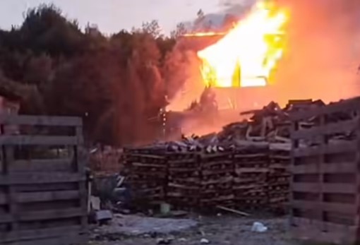 VIDEO Incendiu devastator în Râșnov. Un grajd a fost înghițit de flăcări, iar riscul de extindere este major